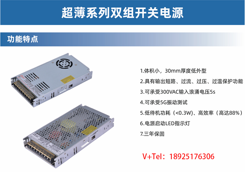350W超薄開關(guān)電源:12V/24V雙組輸出。