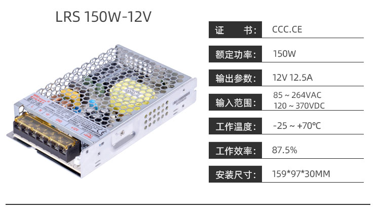 12V開關(guān)電源LRS150W:一體化機構(gòu),內(nèi)部裝配結(jié)構(gòu)合理,提升整體性能,鏤空散熱,采用高速滾珠風(fēng)散,風(fēng)力強大,有效控制溫度,延長使用壽命。
