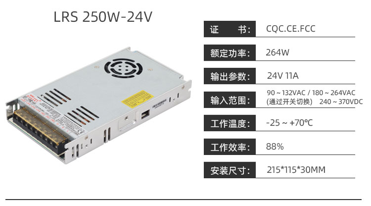 旺馬LRS系列:支持工業(yè)鋁殼設(shè)計,提供單組輸出,適用于LED顯示屏、自動化設(shè)備及門禁系統(tǒng),部分型號支持超薄設(shè)計。