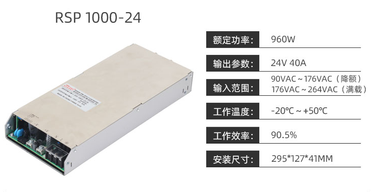 開關(guān)電源RSP1000功能特點(diǎn): 1. 高效率 :減少能耗損耗,符合節(jié)能減排要求,為客戶節(jié)省電費(fèi)。 2.高功率密度 :可節(jié)省客戶空間,降低系統(tǒng)成本。 3.輸入諧波 :減少對(duì)電網(wǎng)的污染,更高的電網(wǎng)適應(yīng)能力。 :4.寬輸入電壓范圍,寬輸出電壓范圍 ,適合大多數(shù)不同輸入、輸出電壓場(chǎng)合。 5.寬工作溫度范圍 :寬工作溫度范圍滿足大多數(shù)嚴(yán)酷的工作環(huán)境。 6.輸入抗高壓沖擊功能 :極大提高系統(tǒng)的可靠性。