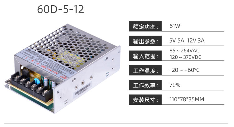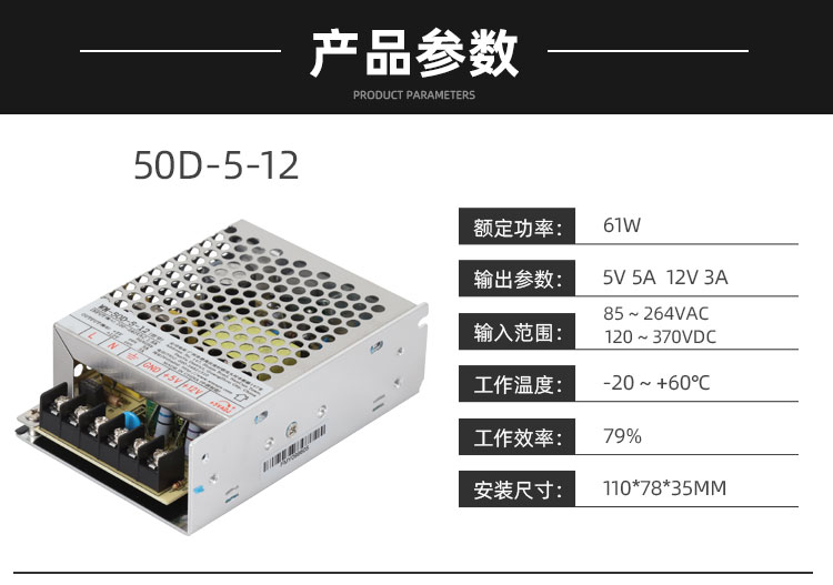 5V12V雙組輸出電源產(chǎn)品參數(shù)如下: