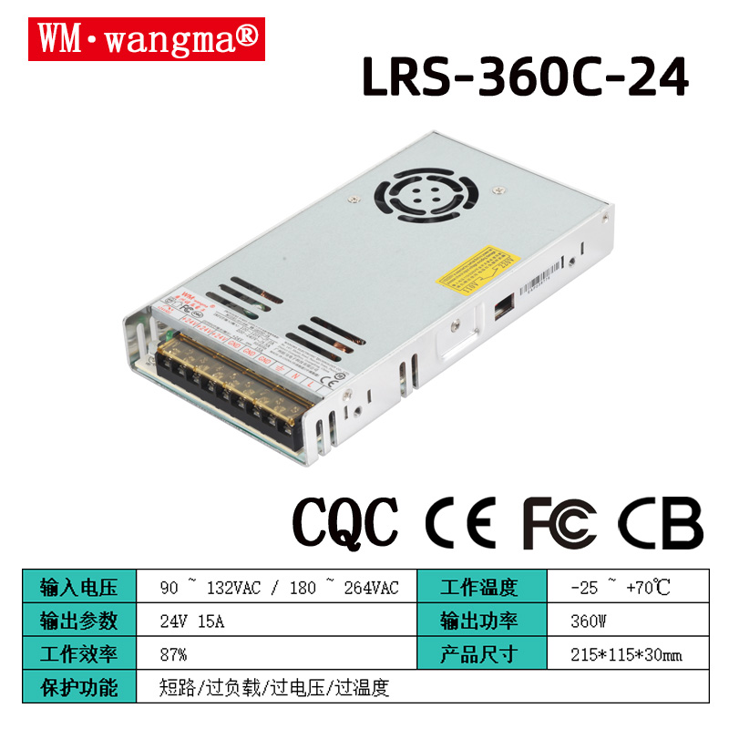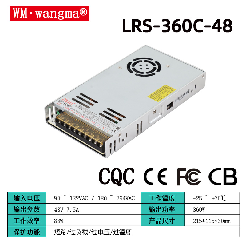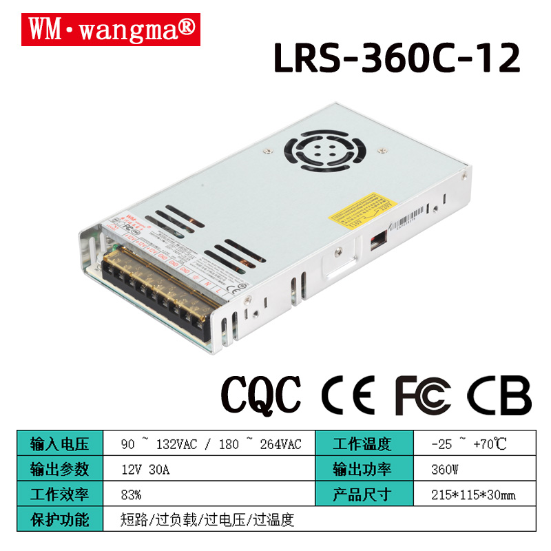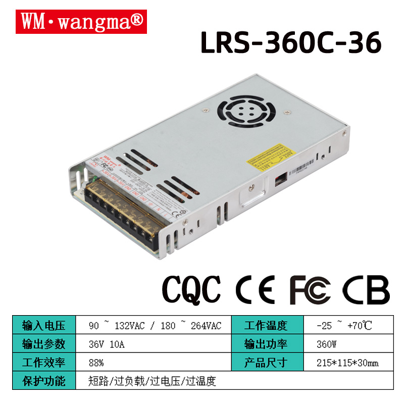 型號(hào)矩陣:WM-LRS360C-5/12/24/36/48V(標(biāo)準(zhǔn)單路輸出,適配不同設(shè)備)